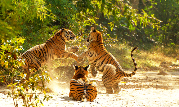 Spread across 940 sq.km, Kanha National Park is one of the largest parks in Madhya Pradesh where the majestic royal Bengal tigers are found in good numbers. The Park is respected globally for saving